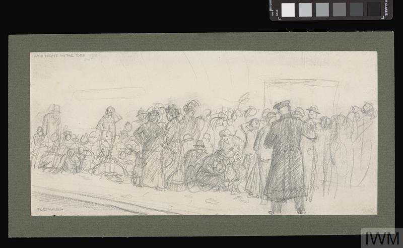 Another possibility is license, official or social. Maybe the authorities didn’t allow photographers to take photos of tube stations being used as shelters, since this may have been seen as a propaganda gift to the enemy. Or maybe those who tried were seen off by the shelterers themselves, who might not have felt like being recorded for posterity when they probably were not at their best. Again, perhaps, but I’ve seen no evidence for either possibility. It could also be a question of timing: perhaps the raids were too intermittent or too brief to allow for anyone to organise photographers to be sent down into the tubes to capture what was going on. The raids of the First World War, after all, were not nearly as intense or as sustained as those of the Second World War. (That, supposedly, 4 million people cumulatively used Underground stations for shelter in 1914–1918 compared with 63 million in 1939–1945 shows this too.)5